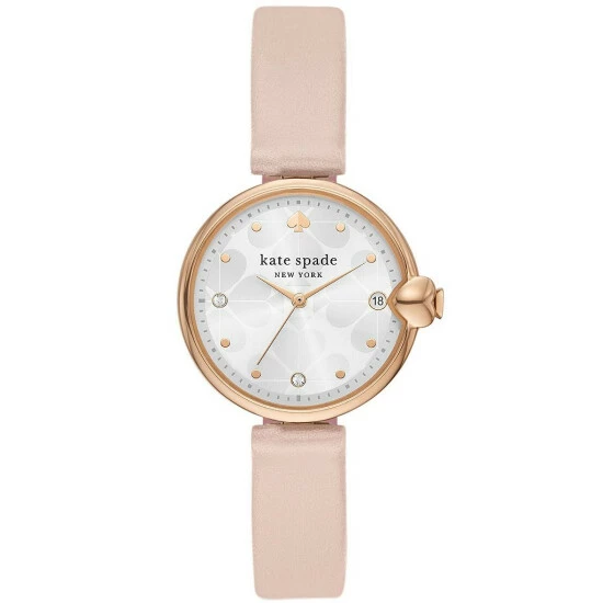 From kate spade new york, the Chelsea Park Three-Hand Date Pink Leather Watch features: