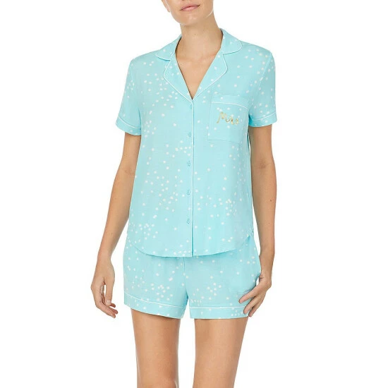 - Notch collar, button front closure top with short sleeves, contrast binding trim detail