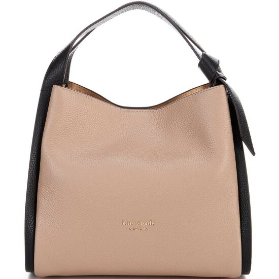From kate spade new york, the Knott Colorblock Medium Pebbled Leather Crossbody Tote Bag features: