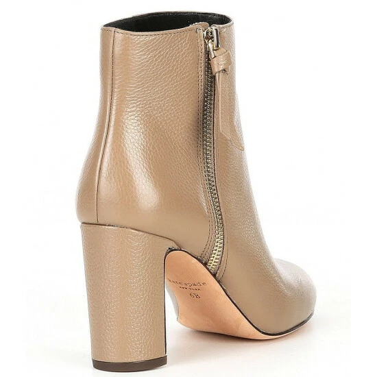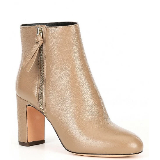 From kate spade new york, the Knott Leather Heel Booties feature:Β