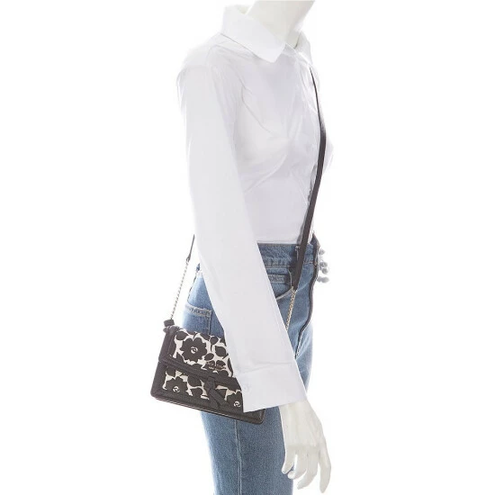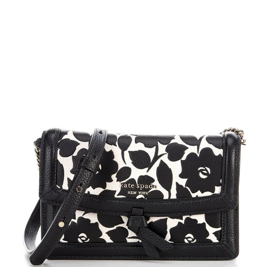 From kate spade new york, the Knott Rosy Garden Embossed Pebbled Leather Flap Crossbody Bag features: