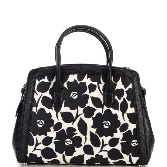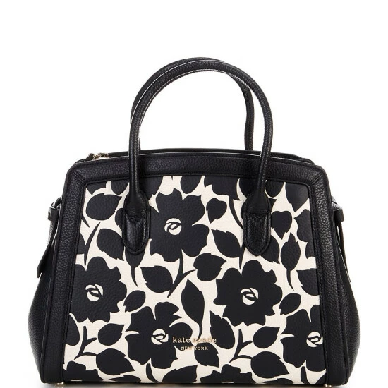 From kate spade new york, the Knott Rosy Garden Embossed Pebbled Leather Medium Satchel Bag features: