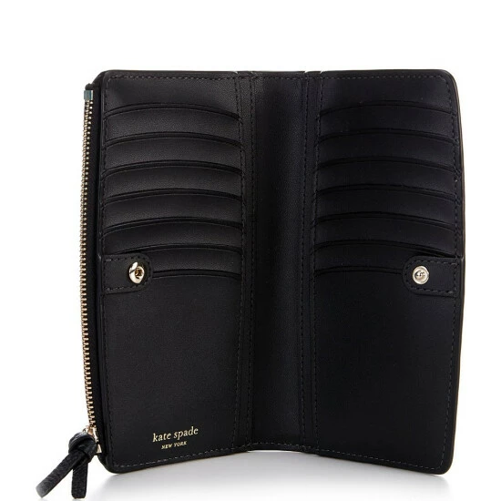 From kate spade new york, the Knott Rosy Garden Embossed Pebbled Leather Zip Slim Wallet features: