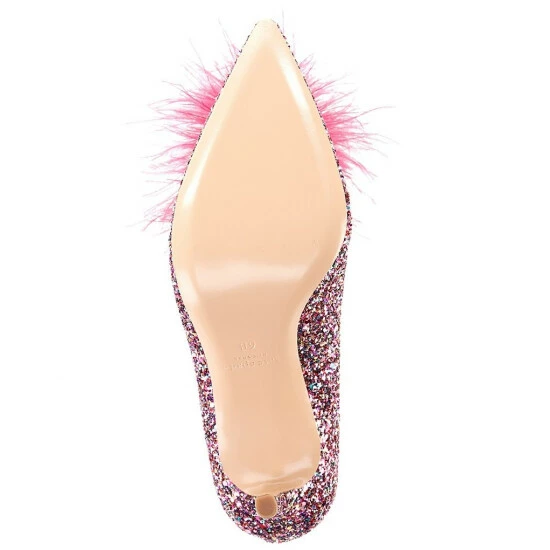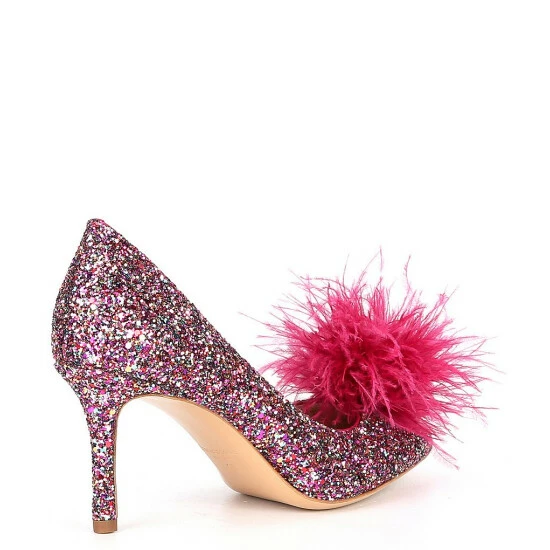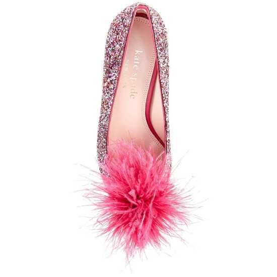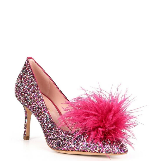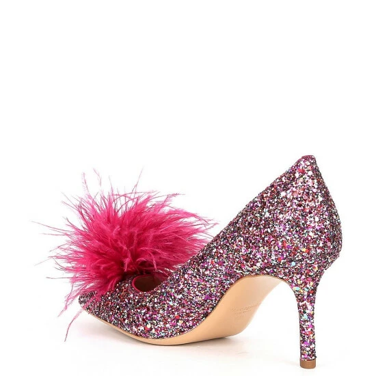 From kate spade new york, the Maribou Glitter Feather Pom Pumps feature: