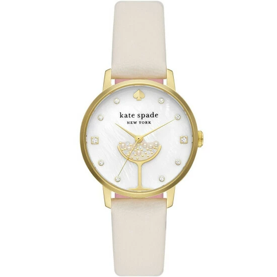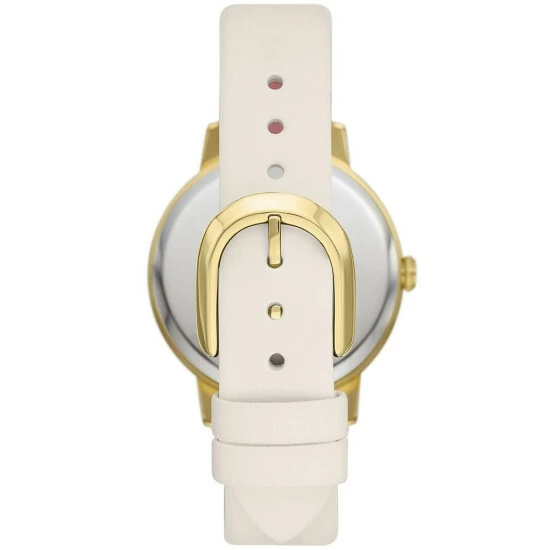 From kate spade new york, the Metro Three-Hand Champagne White Leather Watch features: