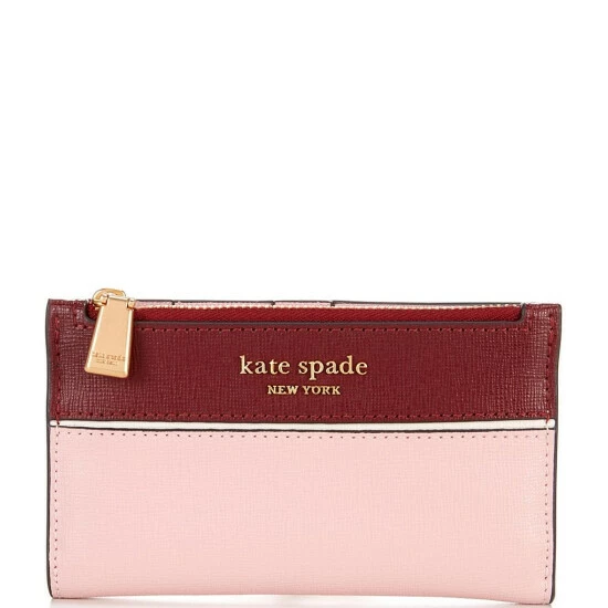From kate spade new york, the Morgan Colorblock Slim Leather Bifold Wallet features:
