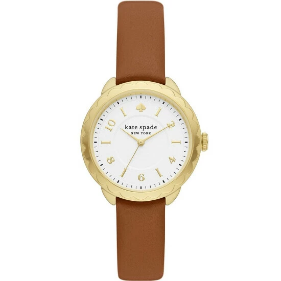 From kate spade new york, the Morningside Three-Hand Brown Leather Strap Watch features: