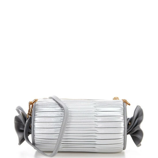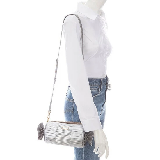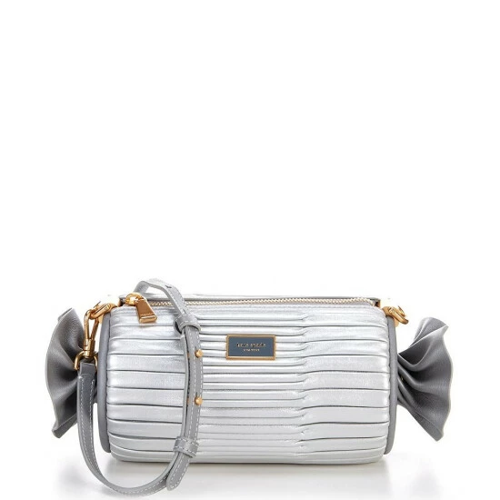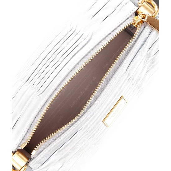 From kate spade new york, the Small Sweet Treats Metallic Pleated Leather Barrel Bag features: