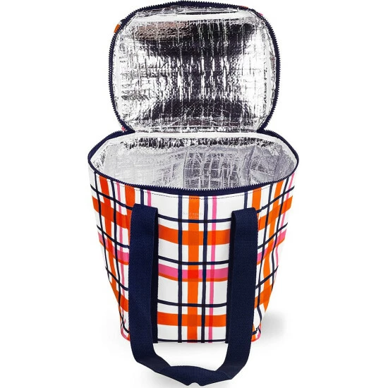 From kate spade new york, the Spring Plaid Picnic Cooler features:Β