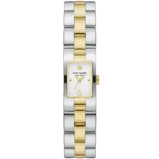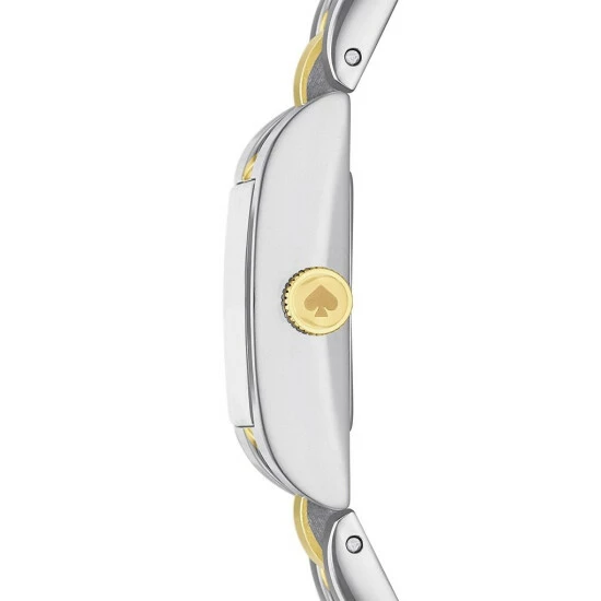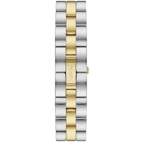 From kate spade new york, the Women’s Brookville Three-Hand Two-Tone Stainless Steel Bracelet Watch features: