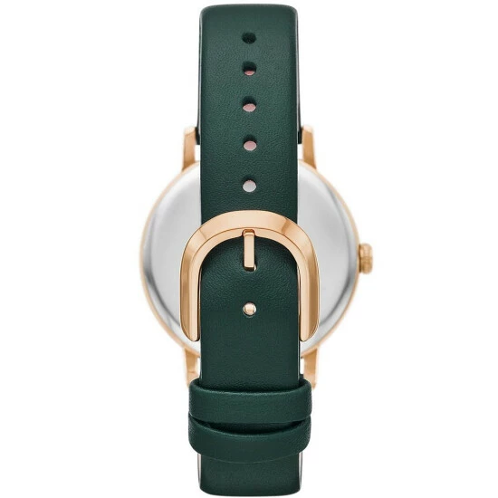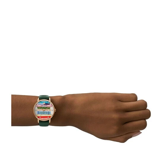 From kate spade new york, the Women’s Metro Bookworm Three-Hand Green Leather Strap Watch features:Β