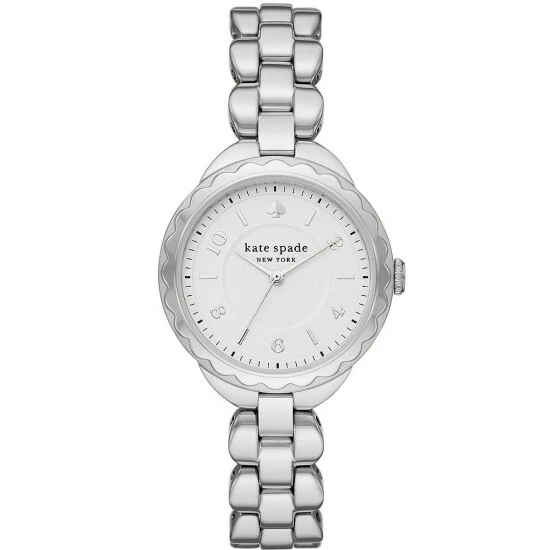 From kate spade new york, the Women’s Morningside Three-Hand Stainless Steel Bracelet Watch features:Β