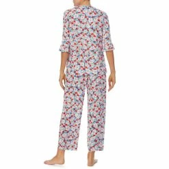 Promo π Kate Spade New York Floral Print 3/4 Sleeve Split V-Neck Woven Pajama Set Multicolor π