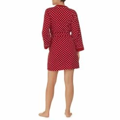 Hot Sale βοΈ Kate Spade New York Dotted Print Long Sleeve Short Cozy Robe Red Cream π